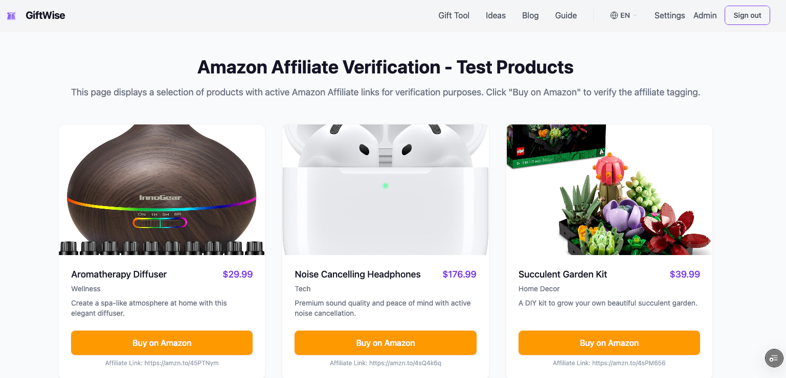We understand that for verification purposes (such as with our payment partners at LianLian Global), it is essential to confirm that our website correctly generates and links to valid Amazon Associate product pages.